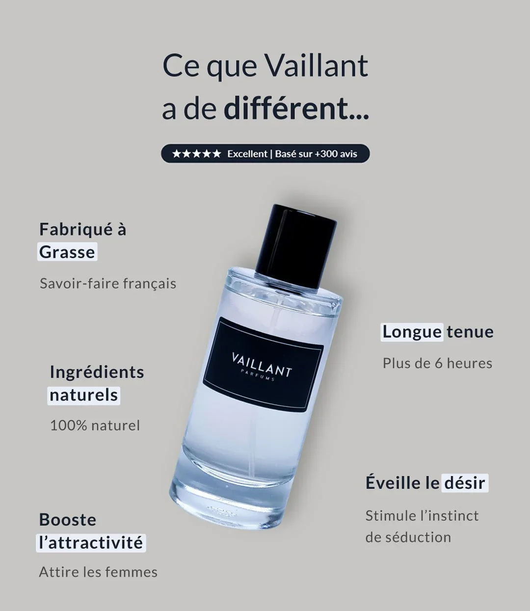 Vaillant n'est pas simplement un parfum, c'est un élixir qui laisse une trace envoutante de désir et marque l'esprit de tous ceux qui croisent son sillage.
