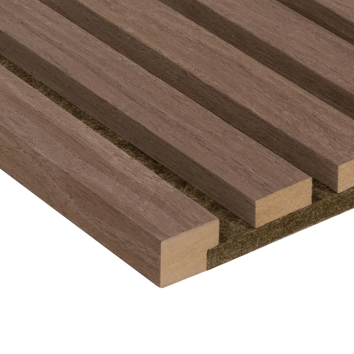 Die gebrauchsfertigen Akustikpaneele in der Farbe Dunkle Eiche lassen sich mühelos an Wand oder Decke anbringen. Auch wenn du kein geübter Handwerker bist, ist die Montage dieser Paneele einfach selbst zu erledigen. Es gibt kaum etwas Schöneres, als das stolze Gefühl nach getaner Arbeit, wenn du deine Akustikpaneele selbst angebracht hast. Ein zusätzlicher Vorteil einer DIY-Lattenwand ist die Einsparung von Montagekosten. Für unsere Kunden haben wir eine ausführliche Anleitung erstellt, die Schritt für Schritt erklärt, wie du die Holzpaneele montierst und welche Werkzeuge du dafür brauchst.