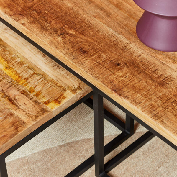 Das Set rechteckiger Couchtische ist aus Mangoholz gefertigt, was ihm eine schöne warme Ausstrahlung verleiht. Dieses schöne Couchtischset aus Mangoholz lässt sich gut mit unseren anderen Möbeln aus Mangoholz kombinieren, wie z.B. den Produkten der Möbelserien Britt, Liv oder Axel.