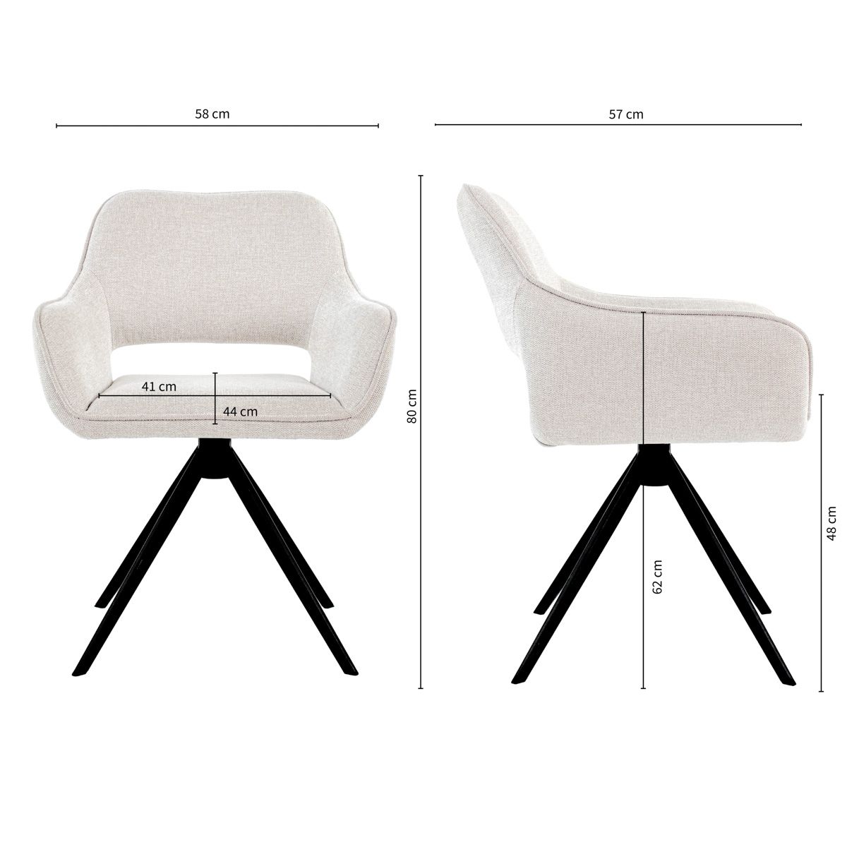 - T: 57 cm x B: 58 cm x H: 80 cm