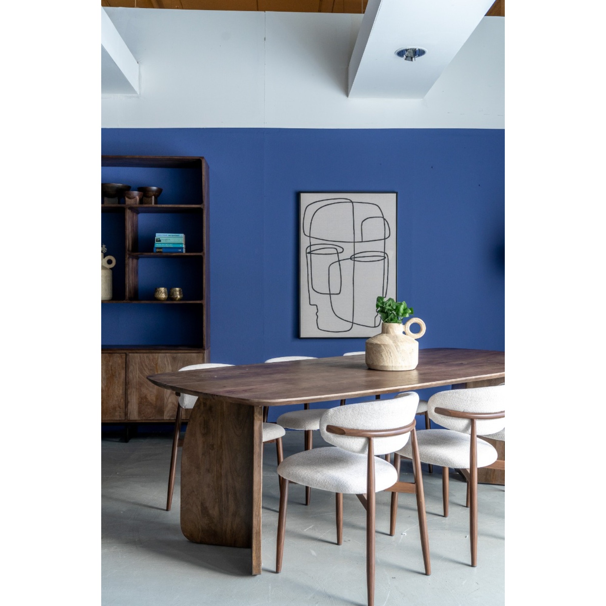 Der passende Stoff in Crème sorgt für einen eleganten Look und macht den Jessda-Stuhl zu einem echten Hingucker. Mit seinen harmonischen Farben und organischen Formen passt dieser Stuhl perfekt in ein Japandi- oder organisch eingerichtetes Interieur. Die Kombination aus natürlichen Materialien und minimalistischen Linien schafft eine ruhige, stilvolle Atmosphäre im Essbereich.