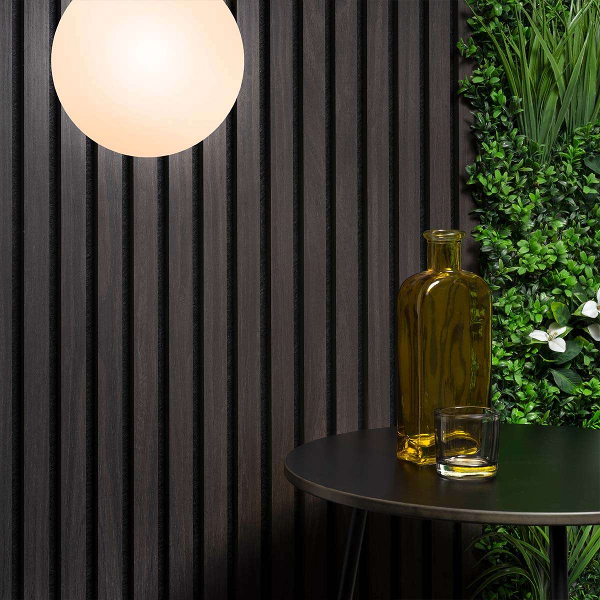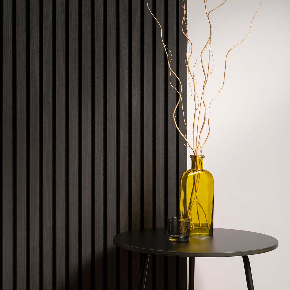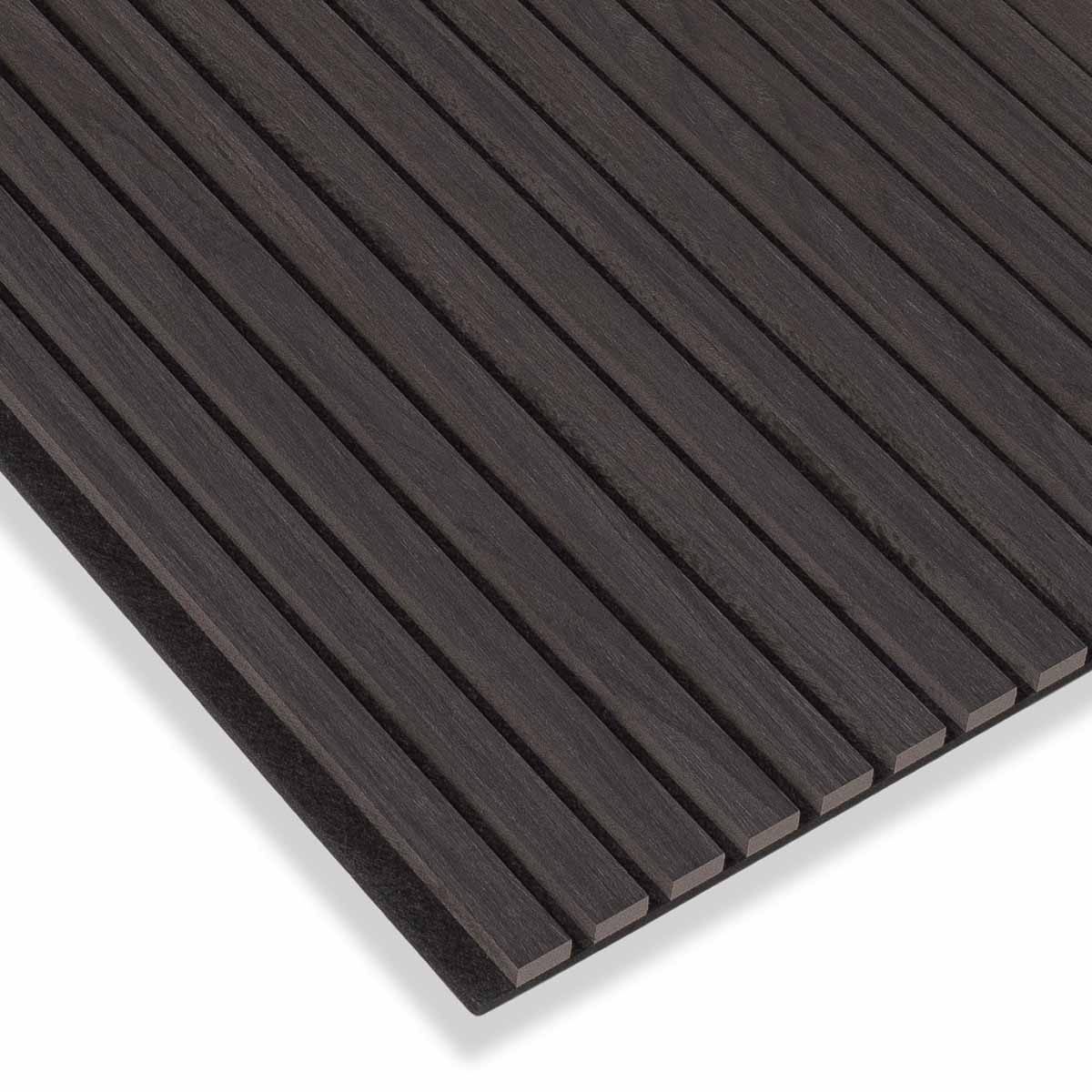 Wenn du die Akustik in einem Raum verbessern möchtest, sind Akustikpaneele in Holzkohle eine ausgezeichnete Lösung. Sie überzeugen durch ihre effektive schallabsorbierende Wirkung und durch ihr elegantes, modernes Design. Die Holzleisten sind so angeordnet, dass Zwischenräume entstehen, in denen sich Schallwellen verlieren können. In Räumen mit viel Nachhall sorgt dies für eine deutlich angenehmere Klangatmosphäre. Der recycelte Filz auf der Rückseite unterstützt zusätzlich die Geräuschreduzierung. Besonders beliebt: Schwarze Paneele hinter dem Fernseher – für ein stilvolles Ambiente und ein verbessertes Klangerlebnis.