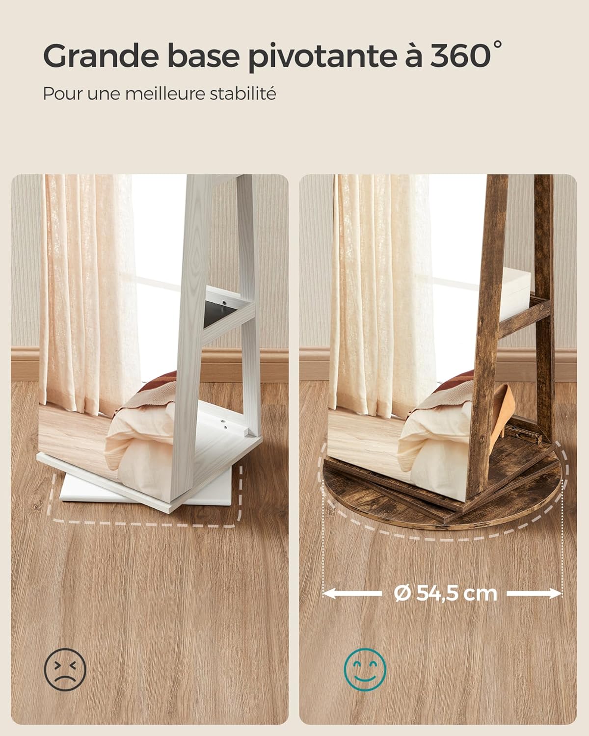 Je cherchais un miroir en pied & ; celui-ci est encore mieux. il pivote, a tellement de rangement & ; les lumières le rendent luxueux. je l'adore !