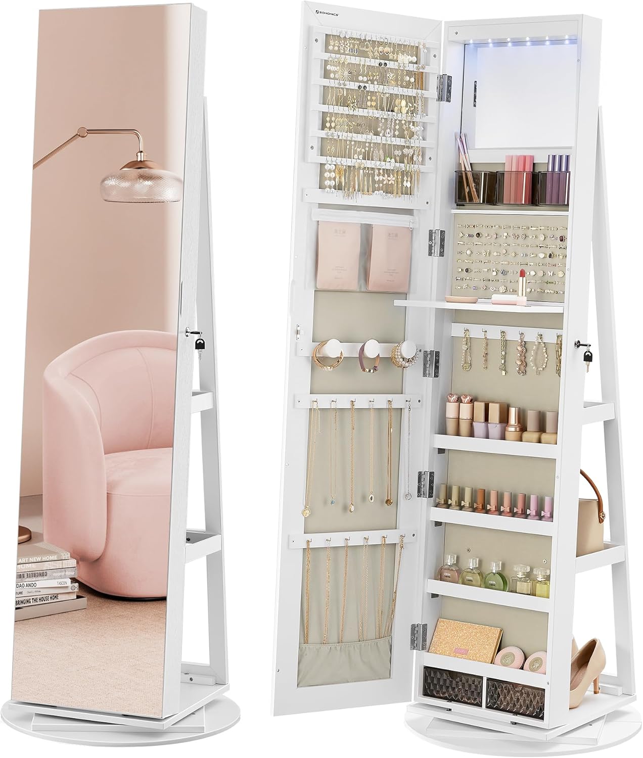 SONGMICS Armoire à bijoux verrouillable avec miroir sans cadre et éclairage LED